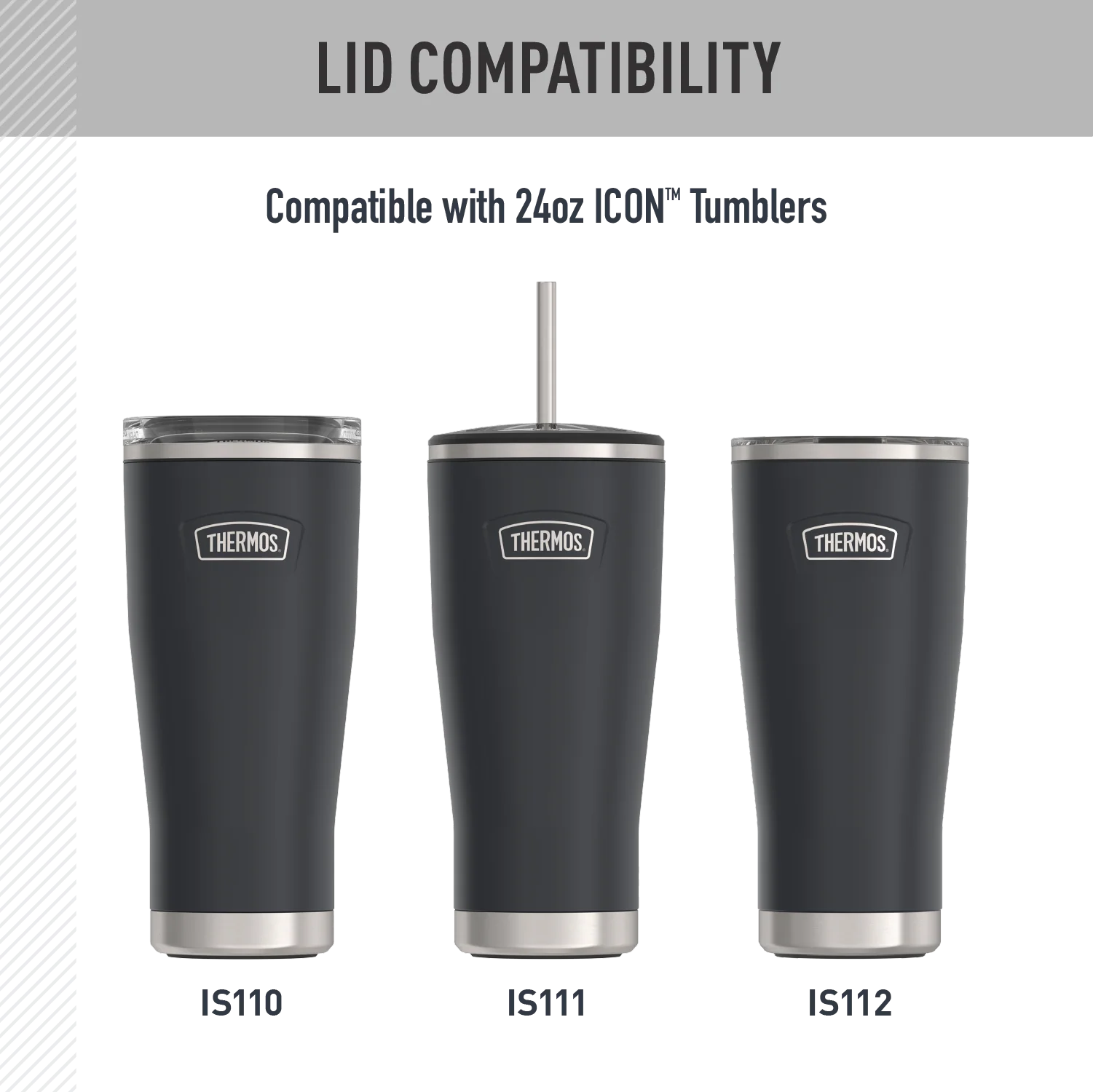 Lost your tumbler lid? No problem. This replacement lid is compatible with 24oz. Icon™ Tumblers – IS110, IS111 + IS112. Whether you're replacing a lost lid or just need a spare, this lid is designed for a perfect fit and long-lasting durability. The Lumiview™ drink lid provides a clear view of contents. Dishwasher safe (top rack dishwasher safe for added convenience). Straws are sold separately on thermos.com.