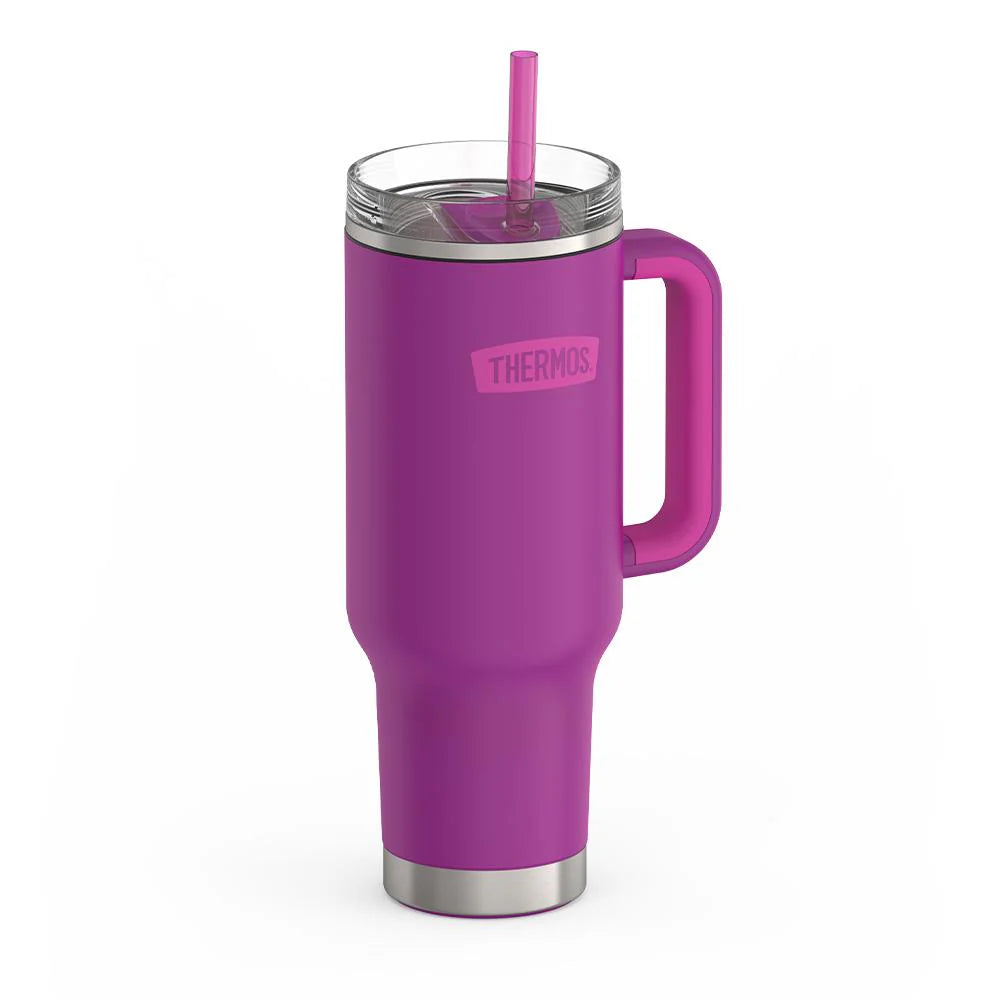 Starts cold. Stays cold. The 40oz Stainless Steel Cup Holder Mug will keep you hydrated to take on the day. From work, to errands, to practice, this is the perfect mug to take with you on the go, as it fits in most standard size cup holders. From the Thermos™ vacuum insulation technology, to the slide lock lid, and the Griptec™ non-slip base and handle, we’ve got you covered. Also equipped with a Lumiview™ lid to provide a clear view of the contents and a straw gasket that is leak resistant when the slider is closed. The lid and straw are ultra clear, reusable, and easy to clean. Dishwasher safe (top rack dishwasher safe for added convenience).