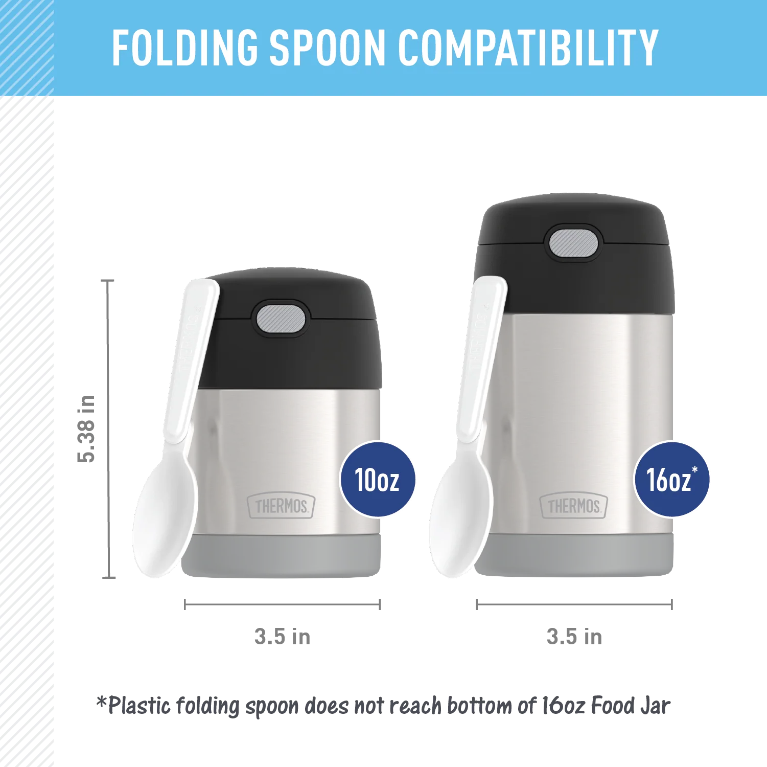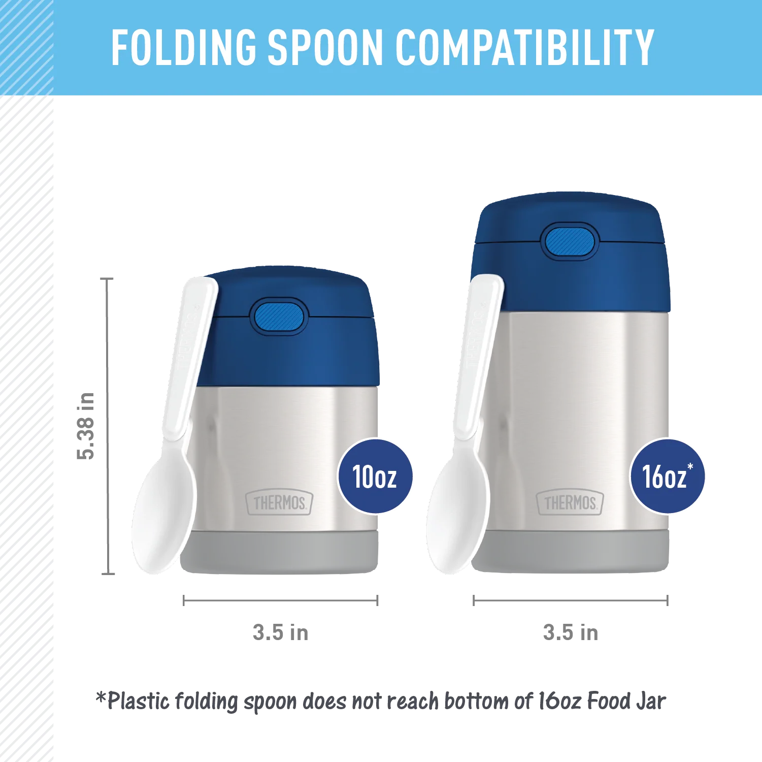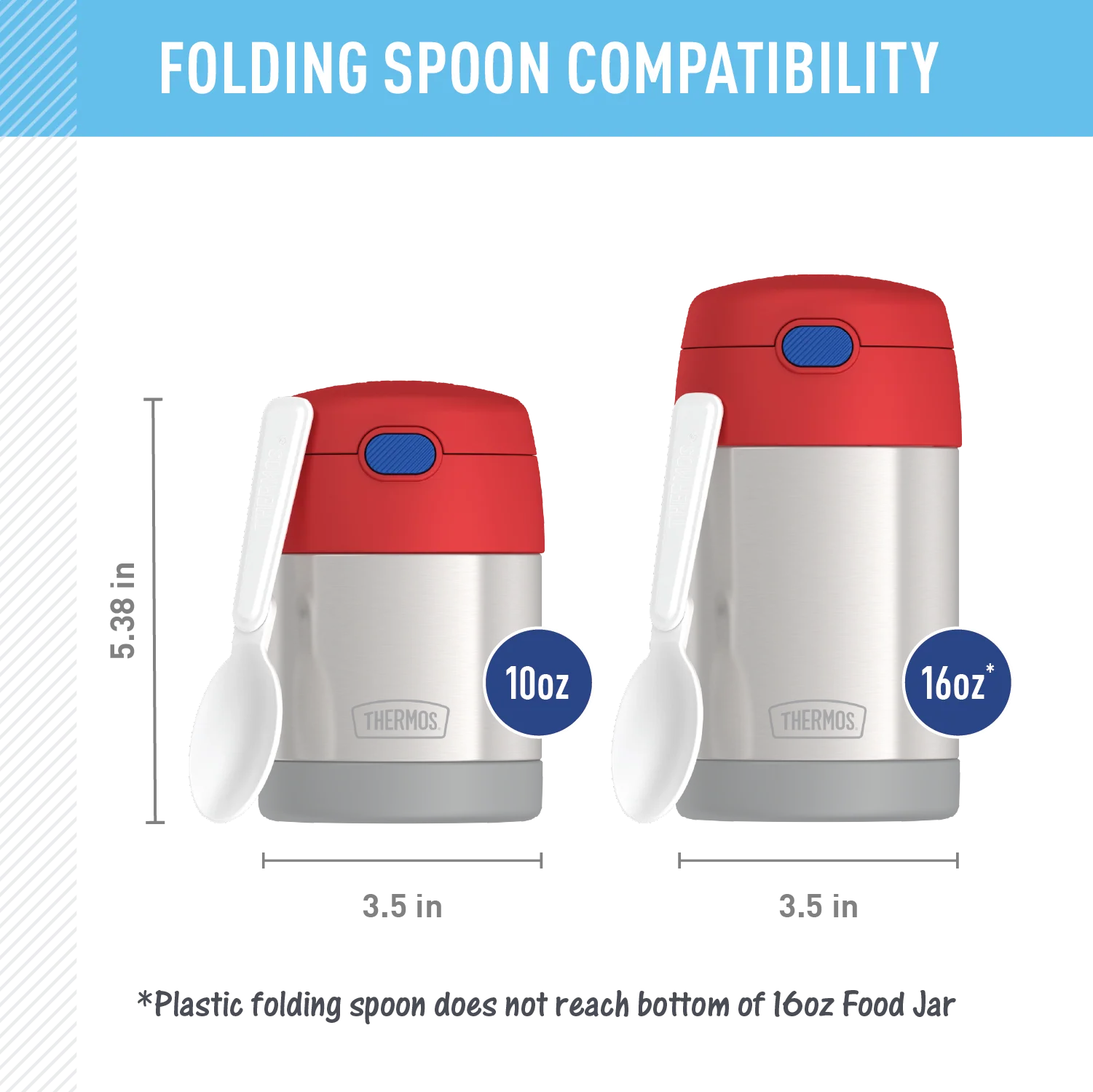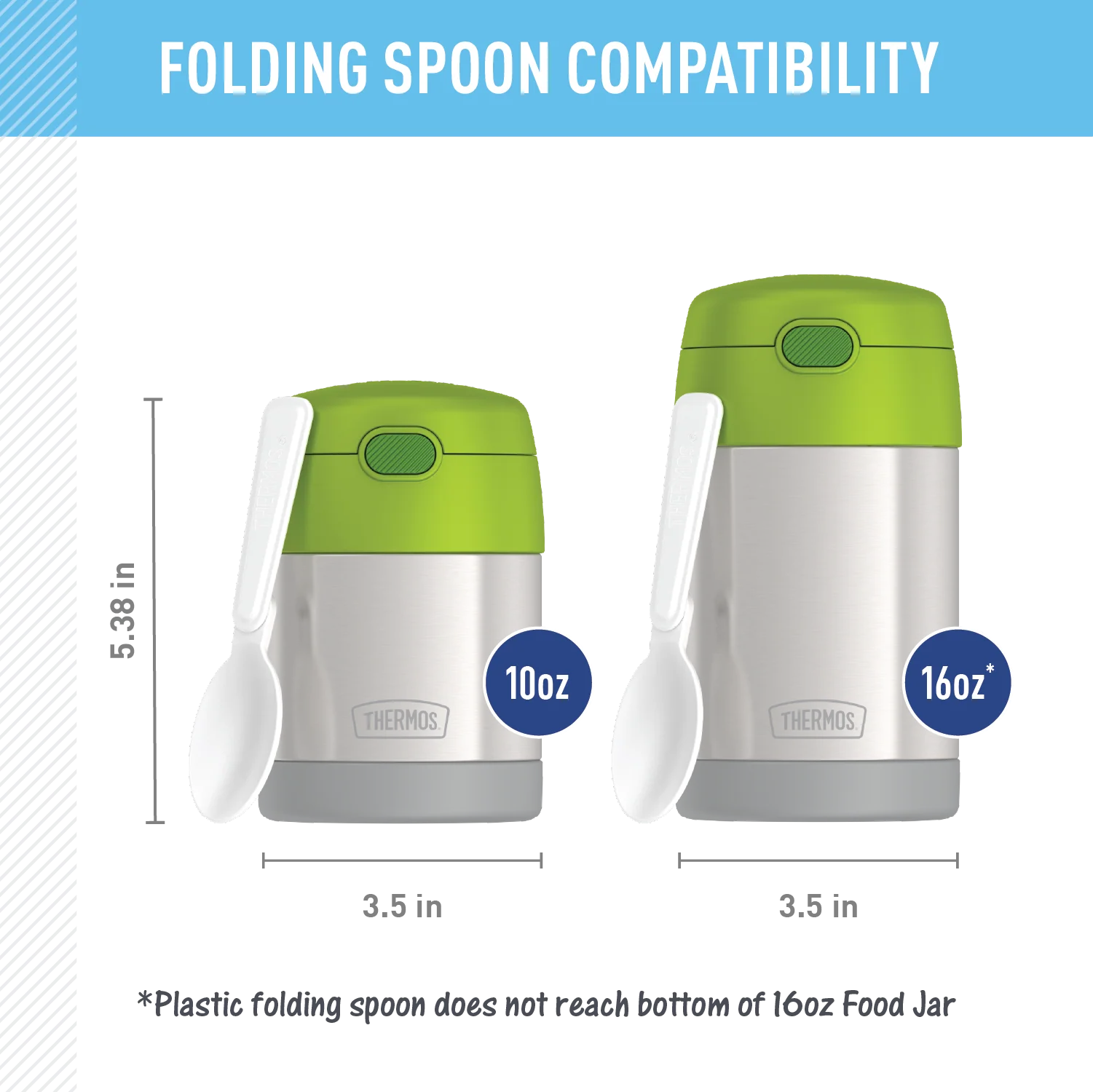- Includes plastic folding spoon, stored inside of lid