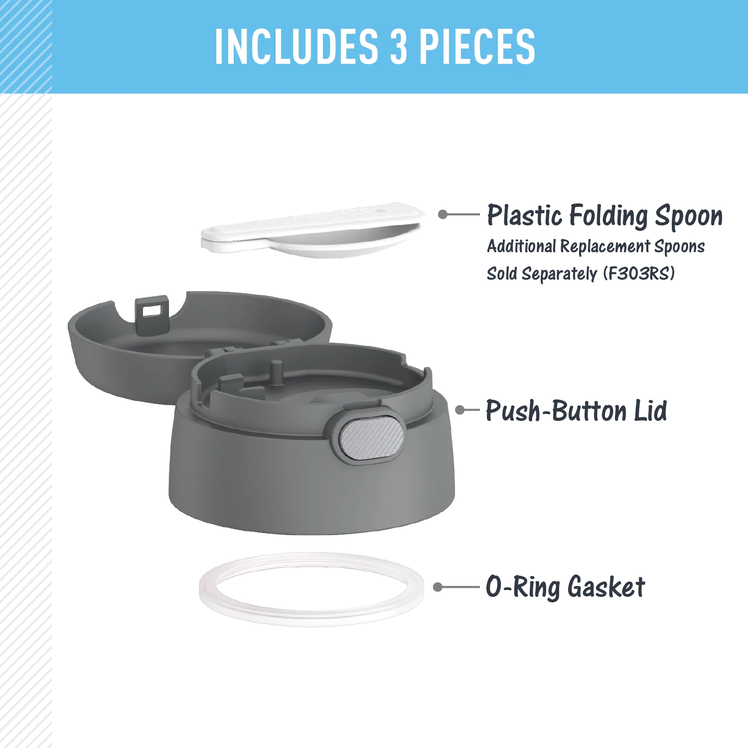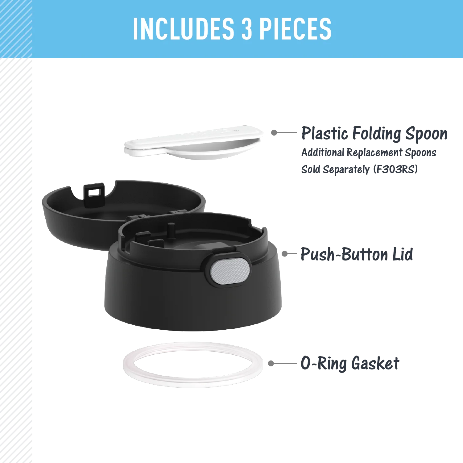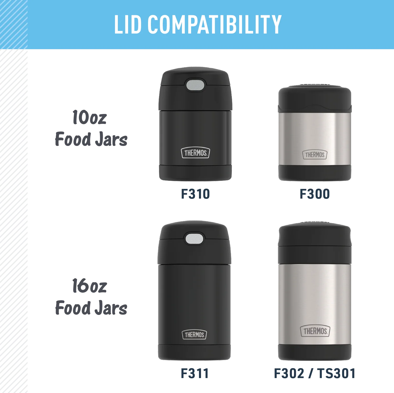 - Compatible with F300, F310, F311, + F302/TS301 food jars